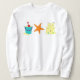 Sweatshirt design features an original marker illustration of a starfish, sand castle, and beach bucket with shovel.