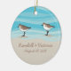 Couples will love this personalised ornament featuring their wedding day or anniversary!Two sandpipers skitter along the edge of a blue sea above two names and a special date written in the sand. It's perfect for celebrating a beach wedding, or expressing a love of the ocean and cute shore birds!