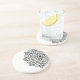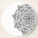 This sandstone coaster is shown with a lovely black flower starburst art print.