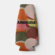 This bottle cooler has a mid-century modern design of manipulated circles overlapping each other in gold, beet, pink, grey, forest green, light green, orange, and lime. Like this design but want different colours? Message me.