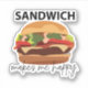 Sandwich Makes Me Happy Sticker designed by Nisha Prabhu. Yummy tasty sandwich graphic illustration with playful typography. Spread joy and good vibes wherever you go with this Sandwich Makes Me Happy sticker! Perfect for sandwich lovers and food enthusiasts, this sticker is a fun and colourful way to add a touch of happiness to your belongings. Stick it on your laptop, water bottle, notebook, or anywhere else you want to showcase your love for sandwiches. The catchy design and vibrant colours make it a standout accessory that will bring a smile to your face every time you see it. Get ready to share your love for sandwiches with the world with this delightful and eye-catching sticker!