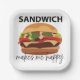 Sandwich Makes Me Happy Party Paper Plates designed by Nisha Prabhu. Yummy tasty sandwich graphic illustration with playful typography. Add a dash of happiness to your party with these Sandwich Makes Me Happy paper plates! Perfect for serving up your favourite sandwiches or snacks at any gathering, these plates will bring a smile to everyone's face. The playful design and vibrant colours make them a must-have for any foodie or sandwich enthusiast. Elevate your party decor with these fun and functional plates that are sure to make your event a hit. Get ready to enjoy good food and good times with these Sandwich Makes Me Happy paper plates!