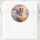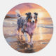 Sandy Australian Shepherd Dog on Beach Sunset Classic Round Sticker