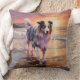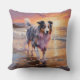 Sandy Australian Shepherd Dog on Beach Sunset Cushion