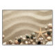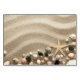 Sandy beach background with shells and starfish. Vacation concept. Top view