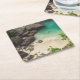 Sandy Beach Cove with Green Trees, Rocks & Ocean Square Paper Coaster