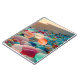 A sandy beach, surrounded by an assortment of colorful pebbles. The vibrant colors of the pebbles contrast with the neutral tones of the sand, creating a visually appealing scene. This image captures a moment that highlights nature's beauty and creativity.
