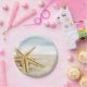 These beautiful, beachy paper plates feature a starfish and seashells on a pretty, sandy beach - perfect for a beach theme wedding or party event! Click the CUSTOMIZE IT button to add text if you like. Matching wedding invitations, stickers, RSVP cards, favour bags and more are available. For requests for another colour or other items featuring this design, contact me: cheryl@cheryldanielsart.com. "Starfish Couple" by Cheryl Daniels © 2014.