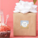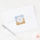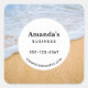 Business stickers with a photograph of a golden brown sandy beach with white foamy surf.