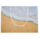 Gift bag with a photograph of a golden brown sandy beach with white foamy surf.