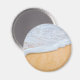 Magnet with a photograph of a golden brown sandy beach with white foamy surf.