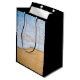 Gift bag with a photograph of a golden brown sandy beach with white foamy surf.