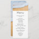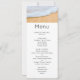 Event menu with a photograph of a golden brown sandy beach with white foamy surf.