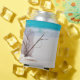 Can cooler with a gorgeous photograph. Tropical blue water and foamy surf in the background. A collection of seashells and stems set on a white sandy beach.