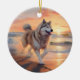 Sandy Paws Alaskan Malamute Dog on Beach Sunset Ceramic Tree Decoration