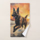 Sandy Paws Belgian Malinois Dog on Beach Sunset Bath Towel Set