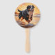 Sandy Paws Bernese Mountain Dog on Beach Sunset Hand Fan