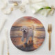 Sandy Paws Bichon Frise Dog on Beach Sunset Paper Plate