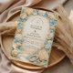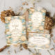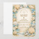 A refined coastal wedding design featuring an elegant oval wreath of seashells, oyster shells, starfish, and soft sea glass accents. Neutral sandy tones blend with muted ocean blues and delicate dune grasses to create a serene seaside aesthetic. The warm parchment background enhances the natural textures while maintaining a timeless, elevated feel. Perfect for a romantic beach celebration with classic coastal charm.