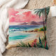 A peaceful tropical shoreline where golden sand meets rolling turquoise waves. Lush palm trees sway under a dreamy pink and teal sunset. The perfect escape for those who love the beach and ocean breeze.