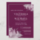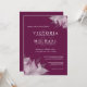 Abstract white gardenia flowers with wispy leaves and whimsical swirls border this beautiful wedding invitation set. Perfect for garden weddings in any season -- simply change the background colour for spring, summer, autumn, fall, and winter. Elegant semi-formal vintage typography is sure to please the traditional bride, but a splash of trendy styling makes it contemporary enough for modern couples. Simple but stylish elegance at bargain discounts and affordable prices for frugal brides on a budget. Shown with cranberry / bordeaux wine purple background on Basic paper stock -- or upgrade to premium quality felt, linen, recycled, and metallic paper options. Customise it to change the font colours and styles. Please contact us if you would like this design modified to match your colour theme. This easy to use template can also be personalised for any special occasion such as bridal shower, engagement and marriage announcements. Please contact us for assistance if you need help to create your own unique one-of-a-kind invitations. CARD SIZE: 5.5 x 7.5 inches -- other sizes, colours, and paper styles available.