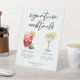 This chic signature cocktails pedestal sign features simple black typography above 2 drinks and their ingredients for your wedding bar. A cute summer Sangria and lemon drop martini drawing add a cool flair to your bar menu. Complete with the couple's names and date for their reception.