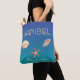 Sanibel Island, Florida, celebration with seashells on an ocean background. Add your custom name or text. If you don't want a name delete that text. The sea shells are beautiful watercolor illustrations and the background is a blue to teal ombre blend.