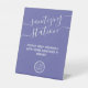 This sign features the personalizable wording "please help yourself with some sanitizer if needed" in modern white fonts and is easily customisable by adding your own text and business logo over a contemporary periwinkle purple background.