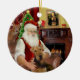 Santa at home relaxing in front of a cosy fire with his Airedale before the big night. Notice Mona Lisa hanging over the mantle.