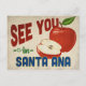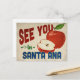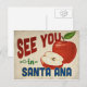 A charming Santa Ana California vintage travel postcard featuring a lovely red apple, along with fun retro style text that says, "See you in Santa Ana"