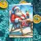 Funny personalised Christmas card. If you live in Florida or anywhere on the nice warm coast, here is a funny "snowbird" Christmas card to send to your family in the colder climates. An ai watercolor illustration of Santa sitting on the beach drinking a Bloody Mary.