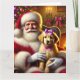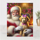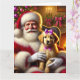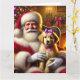 Santa and Golden Retriever Puppy with Pink Bow Card