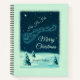 Personalised spiral notebook with a vintage illustration of Santa in his sleigh being pulled by his reindeers. Little stars sprinkle the night sky. Snow covered pine trees on the ground. Vintage retro feel.