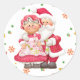 Adorable sticker with Santa Claus and his lovely wife wearing their traditional costumes in red and white.