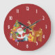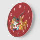 Santa and Reindeer by Christmas Tree with Presents Large Clock