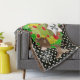 A quality printed throw has its advantages. This is a much finer weave throw than its loopier cousins, and though lighter, it is worth the investment for custom room accessorizing. The back is much prettier than the typical brown, and the fringe on the long sides very vivid, the selvage nicely done. Before photographing, I washed the throw in cold water, delicate, with a thicker woven throw the same size. On tumble dry low, this throw was dry in half the time as the other. This is a very practical quality if you use throws for furniture covers or to wrap up in frequently. The sleekness of the fabric makes it a great layer for accenting or protecting without the feeling of sitting on too much stuff. Perfect for napping or when you feel a light chill coming on. The color printing is beautiful and on this fabric, matched the design and color of my Photoshop image. This is an advantage for blending room fabrics and colors. The fringe on the short sides prints the colors from the design image and therefore varies from the side fringe. I streaked a white fractal line through the plaid pattern to give the illusion of weaving. This printed as crisp as an illusory thread, and put some white in the short side fringe, showing another advantage of print vs loomed- for artistic purposes, line lines, detail, and color integrity can be planned and preserved. My loomed throws have color limitations and more of a needlepoint texture. Print throws reproduce an exact image. The throw felt a little stiff straight out of the package, but this went away in the first delicate wash. Of course I searched the wash water for ink or bleeding and there was none.