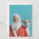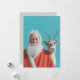 A cheerful Santa stands beside his loyal reindeer against a bright turquoise background, blending classic Christmas warmth with a modern pop-art twist. The vivid colors and joyful expressions make this festive image perfect for holiday decor, greeting cards, or seasonal gifts that celebrate whimsy and holiday spirit.