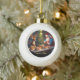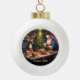 Santa and reindeer make gingerbread house ceramic ball christmas ornament