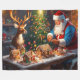 Santa and hie reindeer making gingerbread houses for Christmas
