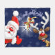 Santa and Reindeer Merry Christmass Happy Cartoon Fleece Blanket