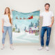 Santa and Reindeer on Christmas Background. Winter Fleece Blanket