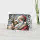 Santa And Reindeer, Snowy Forest, Christmas Tree 3 Holiday Card