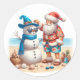 Santa and Snowman Tropical Island Christmas Classic Round Sticker