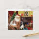 Santa at home with his three Cavalier King Charles Spaniels, relaxing in front of the fire before the big night. (Notice Mona Lisa over the mantle.)