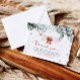 The Red Greenery Santa Baby Winter Christmas Baby Clothes Baby Shower Thank You Card is a delightful way to express gratitude to your guests after a festive baby shower. Featuring a charming red and green design with winter greenery and adorable baby clothes hanging on a clothesline, this card perfectly captures the warmth and joy of the holiday season. It’s a thoughtful, seasonal touch that adds to the excitement of welcoming your little one. Perfect for thanking loved ones for their presence and gifts during your winter baby shower!