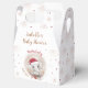 Christmas Baby Shower Small Gable Favour Boxes with the cutest Little Elephant in Santa hat, faux rose gold leaves and snowflakes. You can choose from 3 sizes of these gable favour boxes. Easily personalise the text or leave some blank. - Kate Eden Art