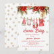 this Santa Baby Holiday Winter Baby Shower Invitation! Featuring an adorable baby clothesline with festive winter details, this invitation perfectly captures the cosy magic of the holiday season.
