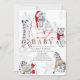 This whimsical "Santa baby" gender-neutral baby shower invitation features baby white tigers surrounded by faux/fake silver snowflakes. The reverse side features a red background with white snow patterns. Personalise it for your needs. You can find matching products at my store.