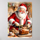 Add a festive touch to your kitchen with this charming Christmas kitchen wall art. Featuring retro vintage Santa Claus, dressed in a traditional red suit with a fur-trimmed coat and hat, busily baking Christmas bread in a cosy, rustic kitchen. The scene is bathed in warm, nostalgic tones with hints of golden light, evoking a sense of nostalgia and festive cheer. Perfect for holiday baking or as a thoughtful gift, customise it with your name to create a unique keepsake for the season.