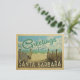 This Greetings From Santa Barbara vintage postcard design features a sandy beach with a beautiful turquoise ocean water and above the sea, a blue sky with billowy white clouds. In vintage travels style.